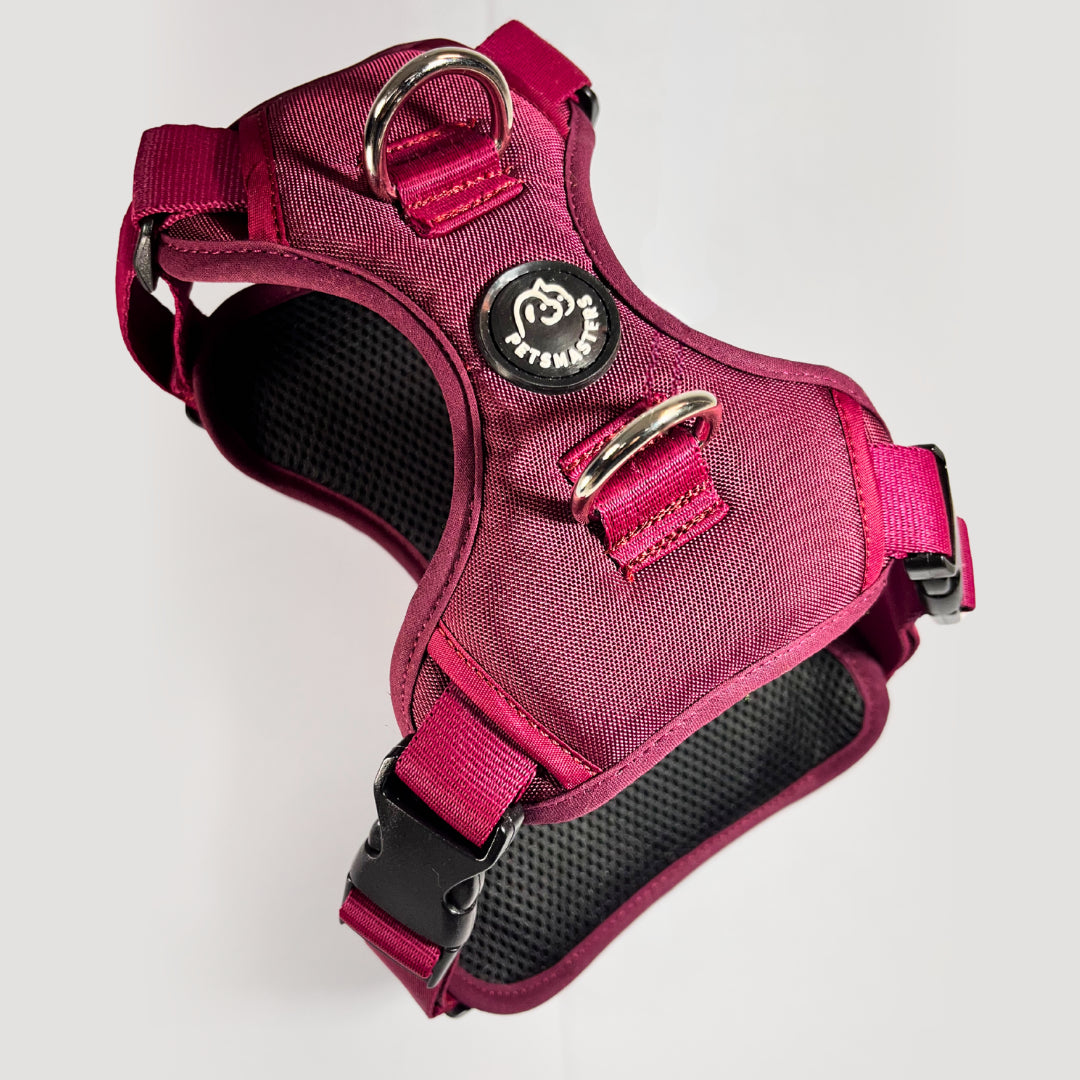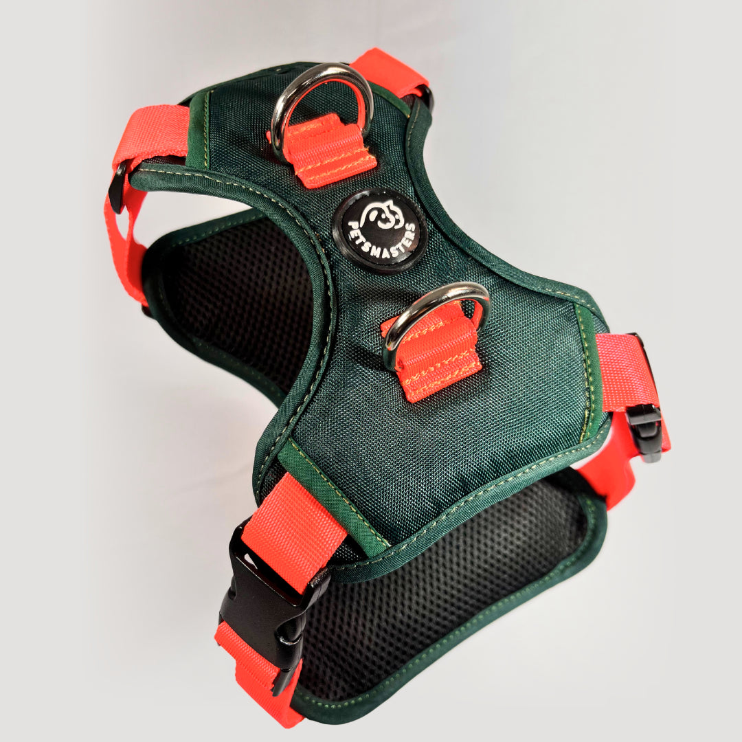 - Tres argollas de control: dos superiores (pecho y lomo) y una frontal antitirones para mejorar el entrenamiento y reducir jalones.